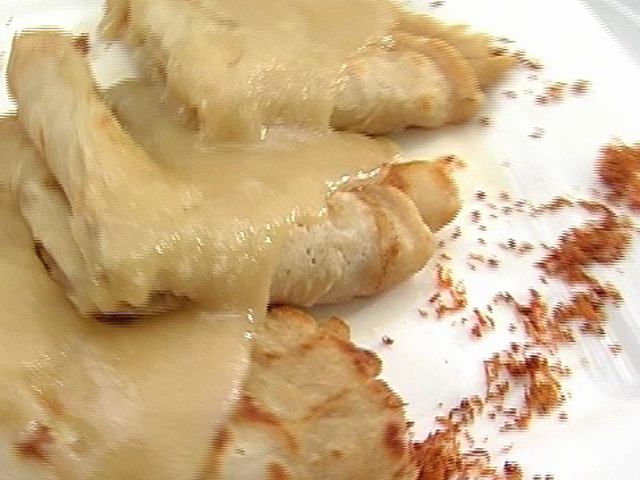 Лакомство для нежных натур.Состав:цедра одного апельсина;апельсиновый ликер — 1/2 стакана;сахар — 120 гр;масло — 60 гр;блины — 3 штуки.